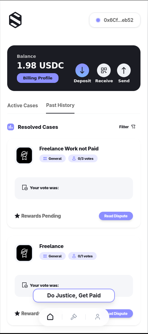 Review evidence, cast your vote, and level up your juror rank from anywhere.